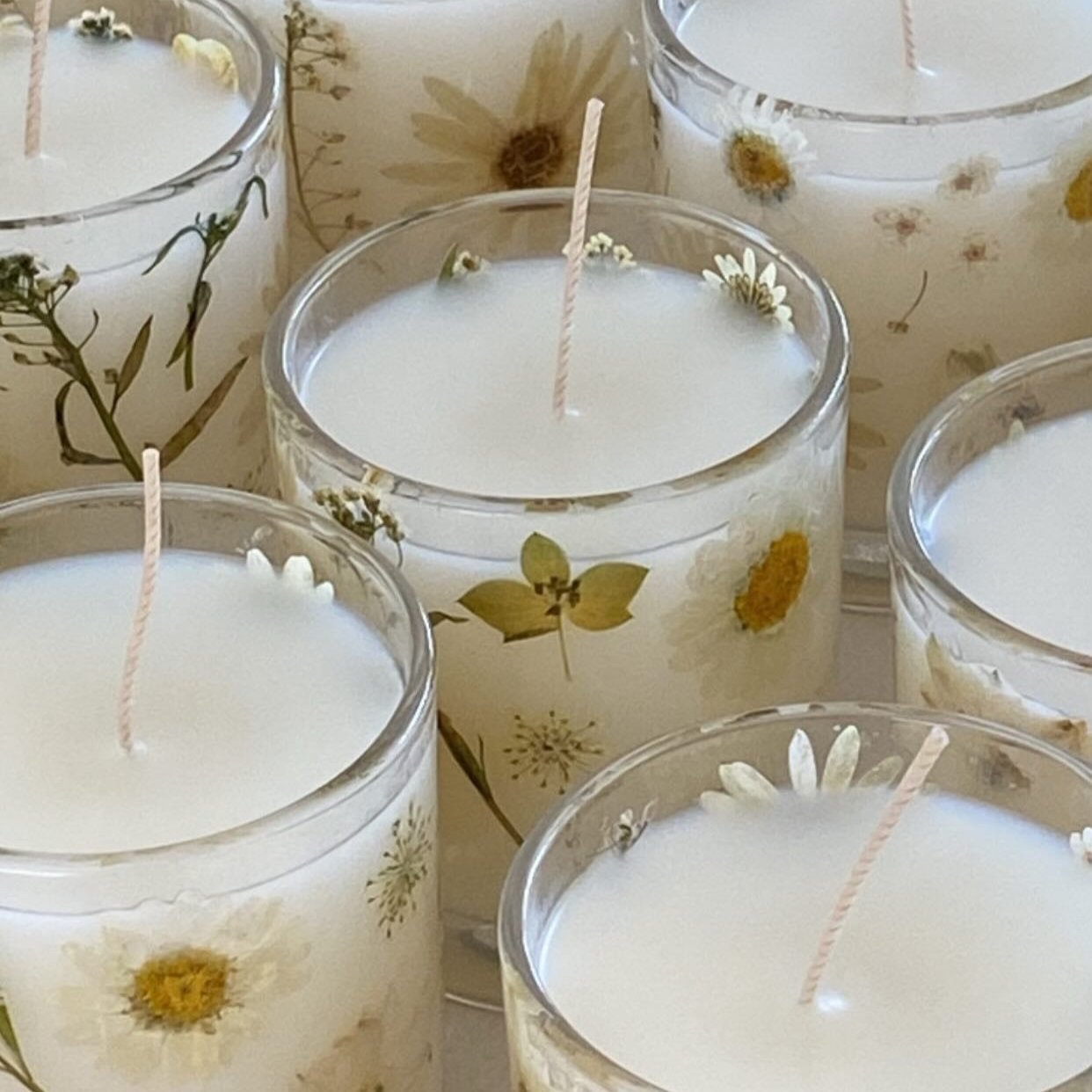 Ingredients: Coconut wax blend, cotton wick, premium fragrance oils, hand-placed pressed wildflowers